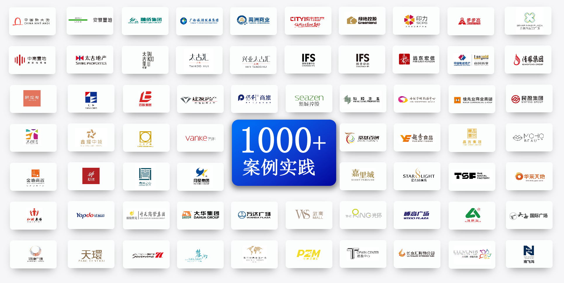 近30年來,團隊服務(wù)行業(yè)客戶已突破1000家,在商業(yè)地產(chǎn)行業(yè)Top50企業(yè)中,海鼎科技客戶覆蓋率達(dá)60%,包括:恒隆地產(chǎn)、太古地產(chǎn)、九龍倉集團、印力集團等知名企業(yè),擁有前沿、可靠的商業(yè)地產(chǎn)數(shù)字化建設(shè)經(jīng)驗。
